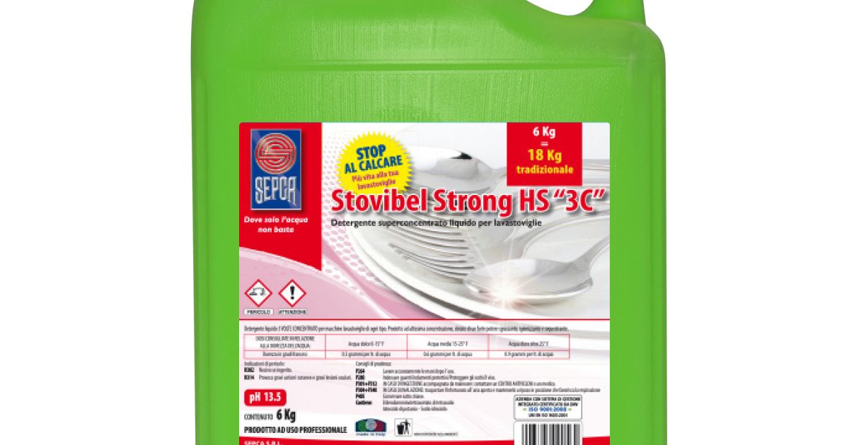 Super-concentrated high-alkalinity liquid detergent with a high concentration of phosphate-free sequestrants. Suitable for washing dishes, pots, and glasses; prevents limescale formation.